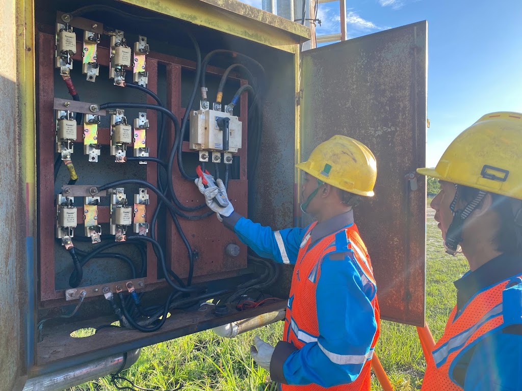 Petugas Pelayanan Teknik tengah melaksanakan pengecekan dan pengukuran pada gardu kelistrikan sebagai bagian dari upaya untuk mengurangi gangguan dan memastikan optimalisasi tegangan, untuk menjaga kestabilan dan meningkatkan kualitas listrik yang diterima oleh pelanggan. (FOTO/DOK/PLN)